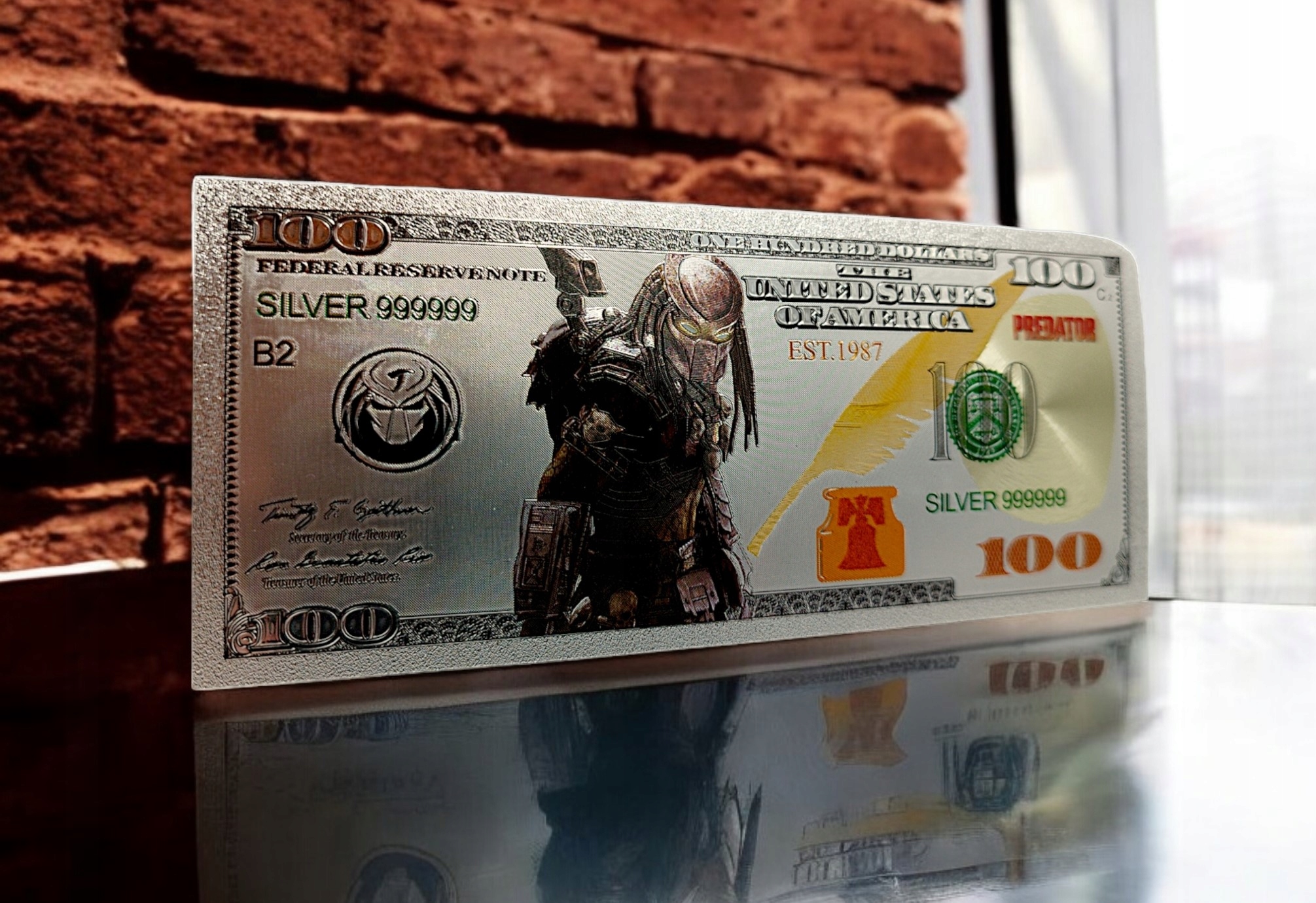 ХИЩНИК Посеребренная коллекционная банкнота для фаната