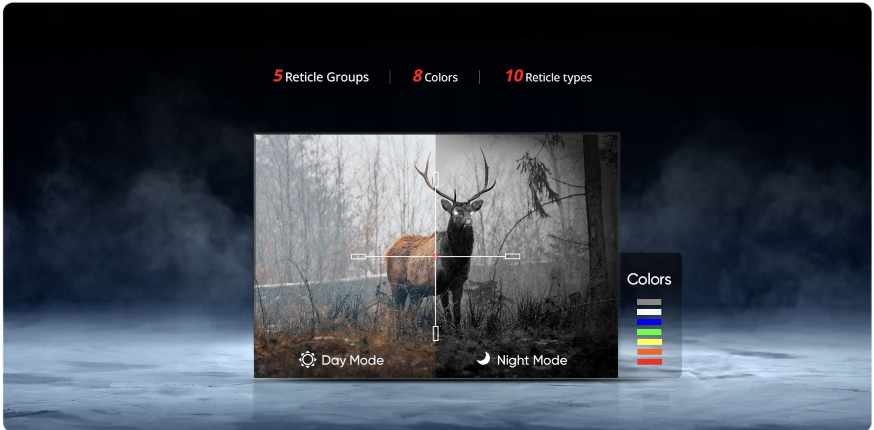Существует 5 групп достопримечательностей с 8 цветами и 10 типами достопримечательностей на выбор в Hikmicro alpex 4K. Чтобы обеспечить большую удобство, можно настроить и сохранить 5 профилей достопримечательностей.