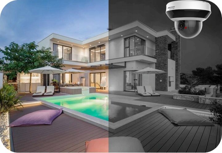 Камера HWP-N2404IH-DE3 оснащена автоматическим ночным режимом. Это означает, что при падении окружающего освещения камера переключается в черно-белый режим. режим, поддерживается инфракрасным прожектором с дальностью действия 20 м.