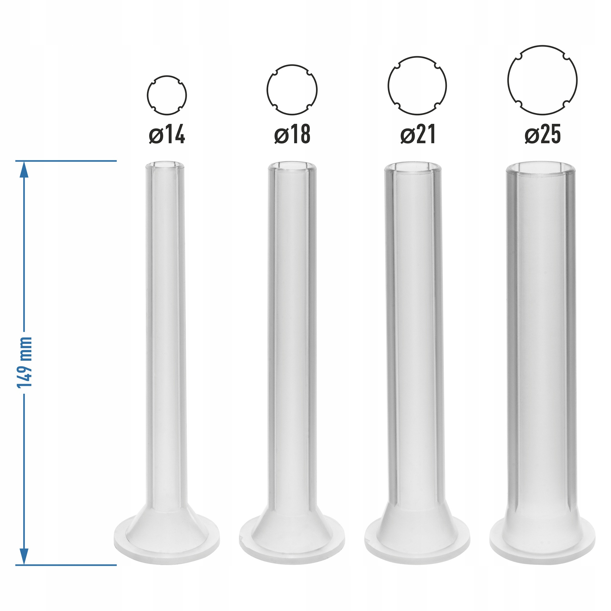 - conteżenek: диаметры 14/16 мм, 18/20 мм, 21/23 мм, 25/27 мм, общая длина 149 мм, максимальная работа 135 мм
