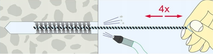 - 2. Очистите отверстие металлической щеткой и насосом. Повторите 4x. [ справа сторона: вставьте подходящий рукав].