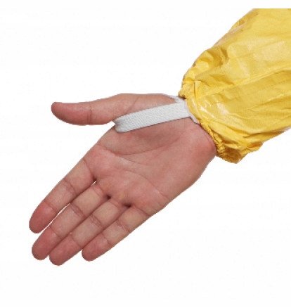 - Петля для большого пальца из эластичной резины прикреплена к манжете рукава. Продев его через большой палец, вы обеспечите идеальную посадку костюма при работе над головой. Предотвращает задирание рукавов. В целях безопасности рекомендуется использовать петлю для большого пальца только при ношении двойных перчаток.