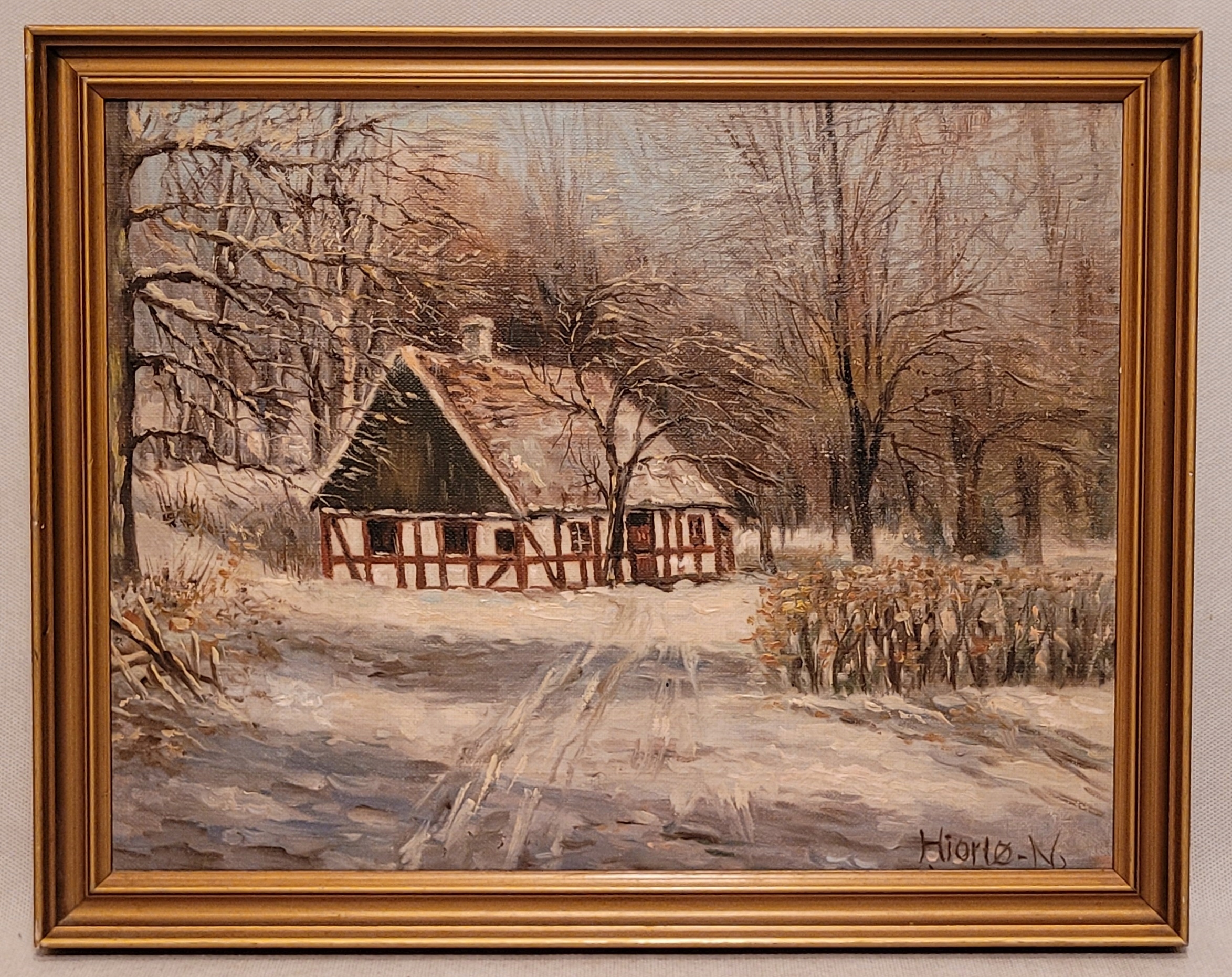 ХИОРТО Н. - «ДОМ В ЛЕСУ», старая картина маслом.