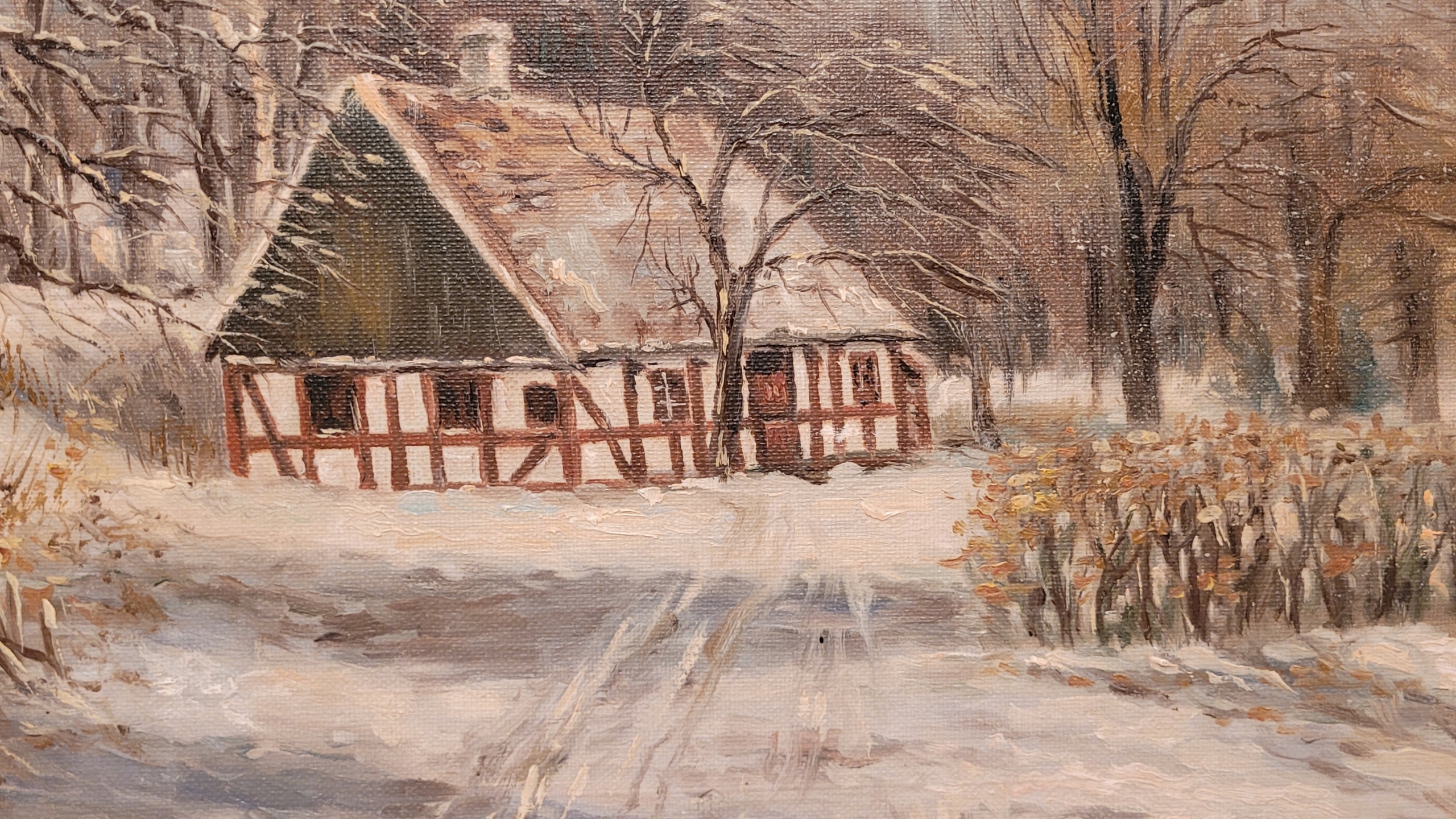 Предмет продажи - красивая, старинная картина маслом "ДОМ В ЛЕСУ".