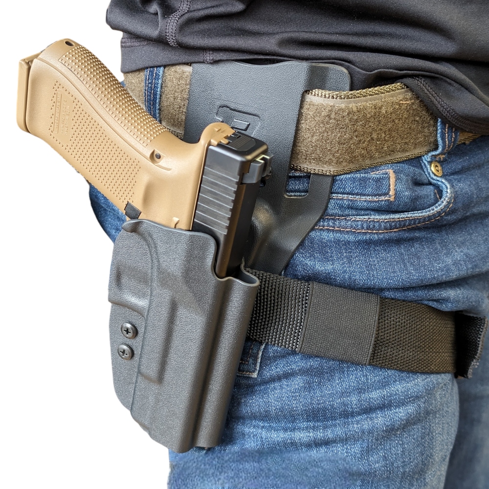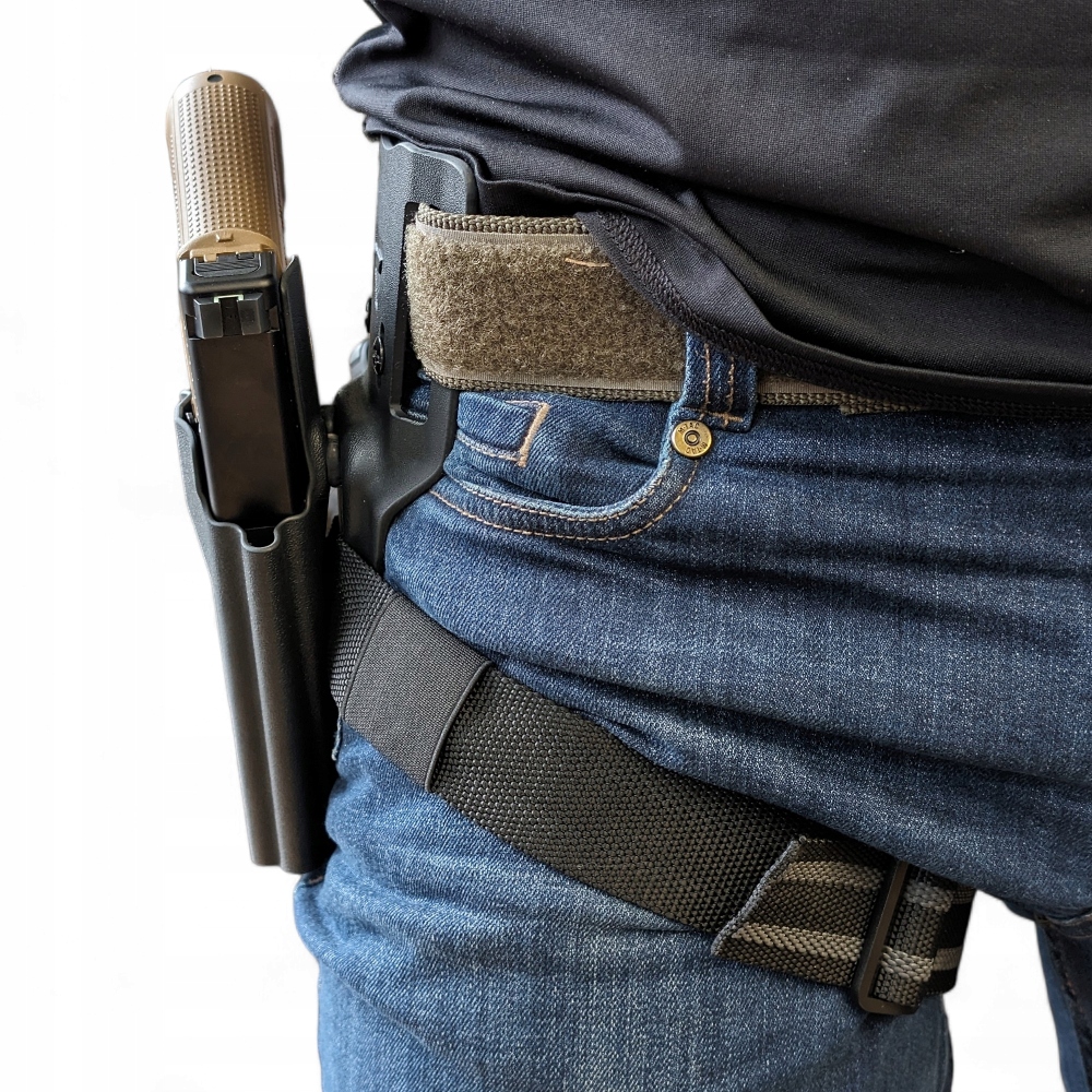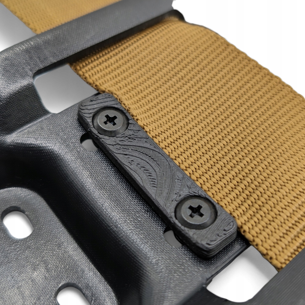 Процесс сборки включает в себя откручивание двух винтов из заводского плавника, а затем прикручивает их в отверстия на панели. Одно из отверстий для винта позволяет изменить угол кобуры.