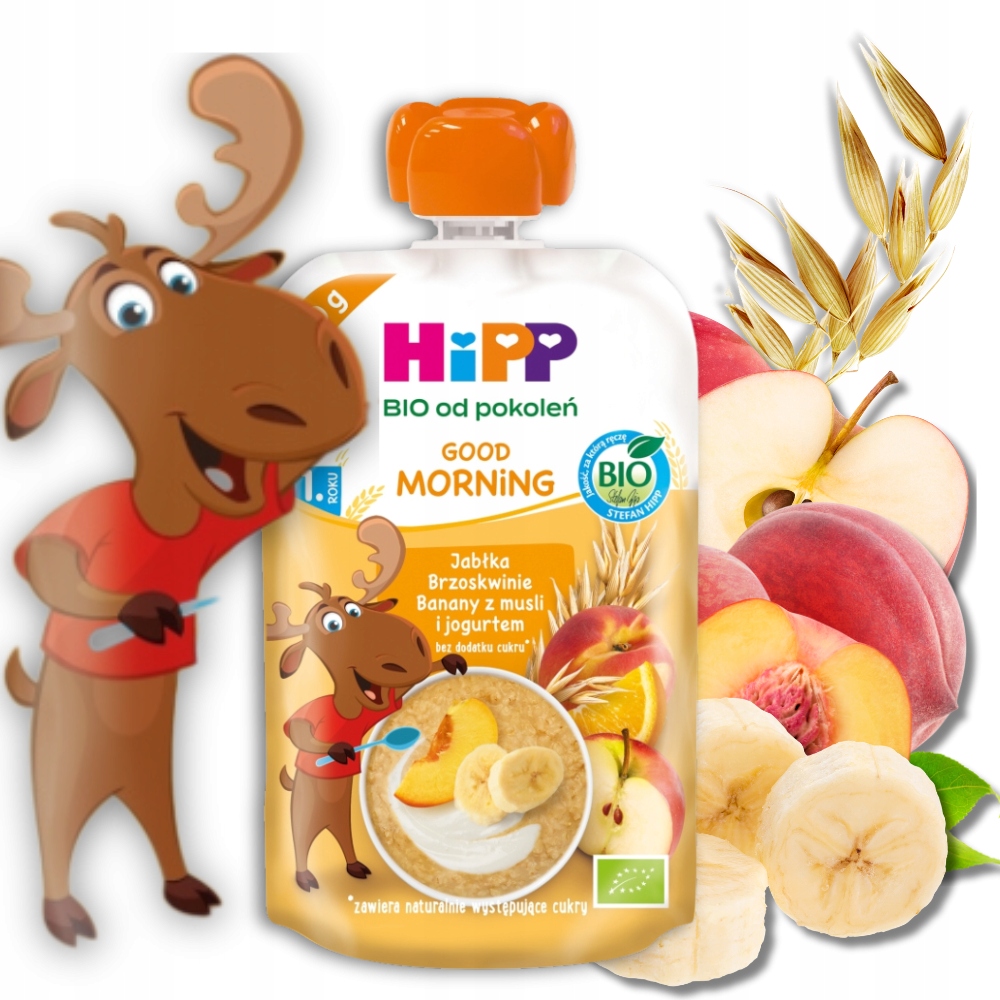 Hipp Bio Доброе утро h1> фруктовый яблочный мусс, персики, мюсли и йогуртные бананы h1>