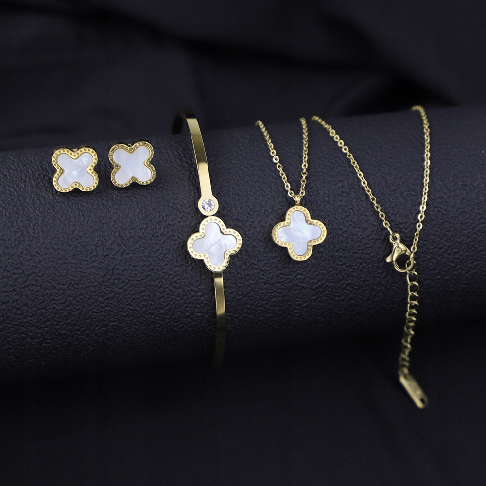 ✨ Комплект украшений из нержавеющей стали колье, серьги, браслет - белый - Bloom Spark ✨