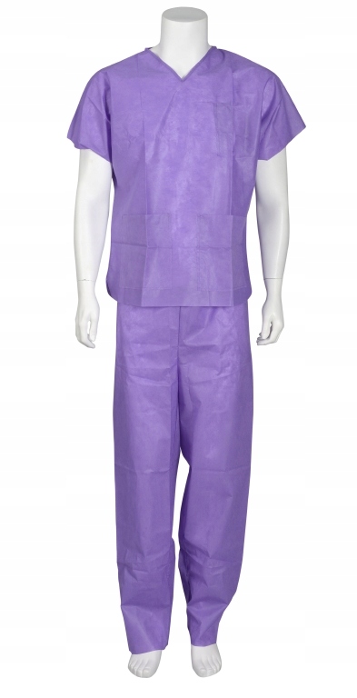 Удобный комплект из рубашки и брюк без манжет для использования персоналом и пациентами во избежание перекрестного заражения. Водоотталкивающий материал, рубашка с V-образным вырезом, 3 карманами и брюки с кулиской на талии. Упаковано в наборе.