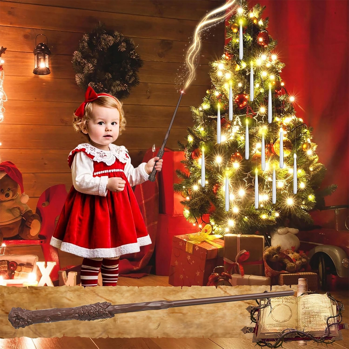 ХИТ НАБОР ИЗ 24 ШТ. ПОДВЕСНЫЕ СВЕЧИ СВЕТОДИОДНЫЕ СВЕЧИ + ДЕКОРАТИВНАЯ ПАЛОЧКА