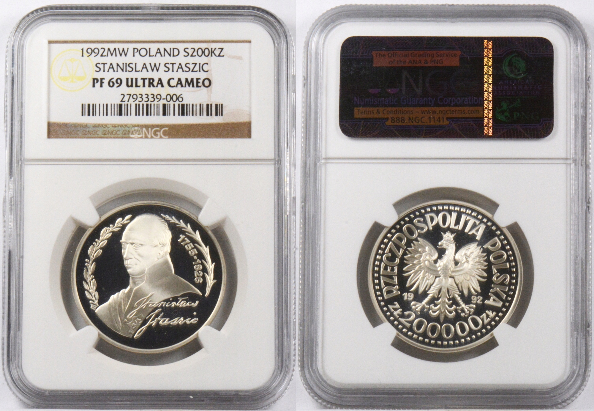 HJ. 200 000 Zlotys 1992 Stanislaw Staszic NGC PF 69 Ultra Cameo 16.09