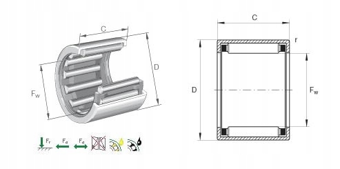 Сквозные игольчатые роликоподшипники открыты с обеих сторон, а глухие роликоподшипники закрыты с одной стороны и подходят для установки на концах вала. . Профилированная нижняя часть этого подшипника также позволяет ему воспринимать небольшие осевые направляющие силы.