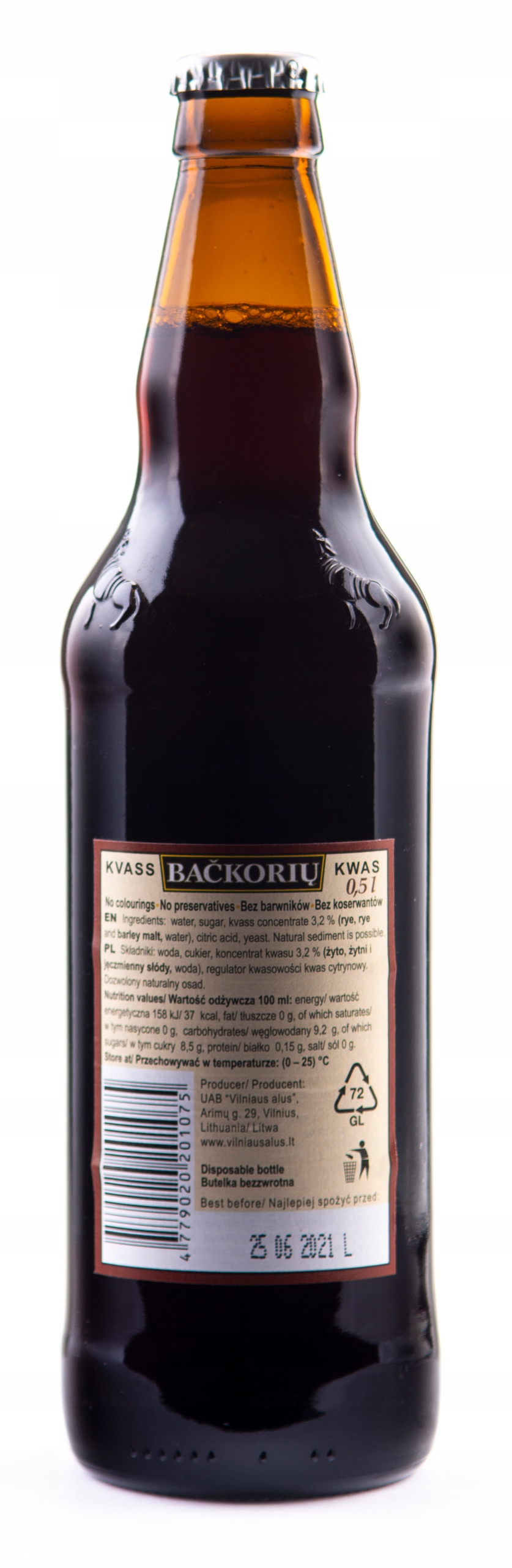 Литовский НАТУРАЛЬНЫЙ Квас в стеклянной бутылке Квас Backoriu 0,5л