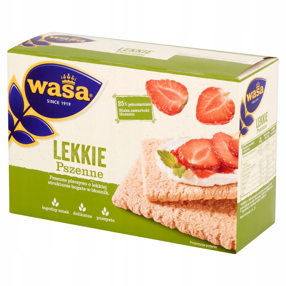 Wasa Lekkie Pszenne — вкусный, хрустящий хлеб с нежным вкусом. Он выпекается из тщательно отобранных ингредиентов и богат клетчаткой.