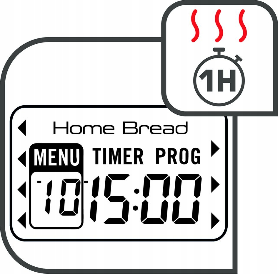 Удобная в использовании панель управления с ЖК-дисплеем позволяет выбирать из 19 программ, регулировать размер буханки и степень поджаривания. Функция отложенного старта до 15 часов позволяет запланировать выпечку на нужное время.