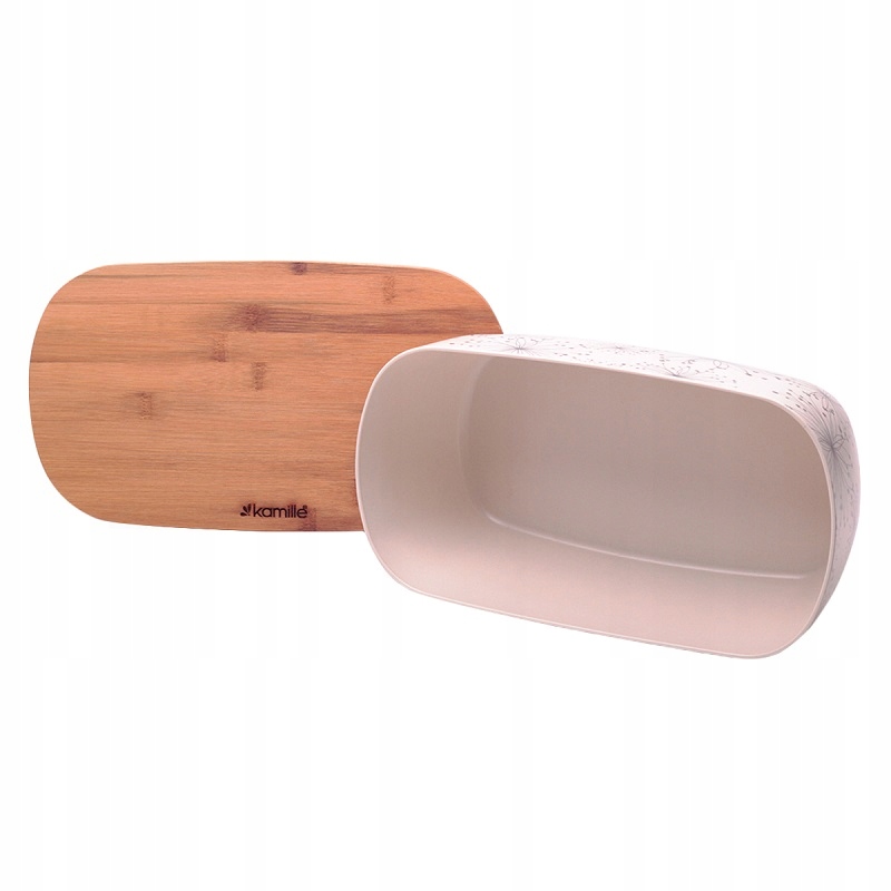 Стильная и современная хлебница KAMILLE изготовлена из бамбукового волокна, поэтому вы можете быть уверены в ее прочности и долговечности. Крышка открывается сверху, если ее полностью снять, и ее можно использовать как разделочную доску из бамбука.