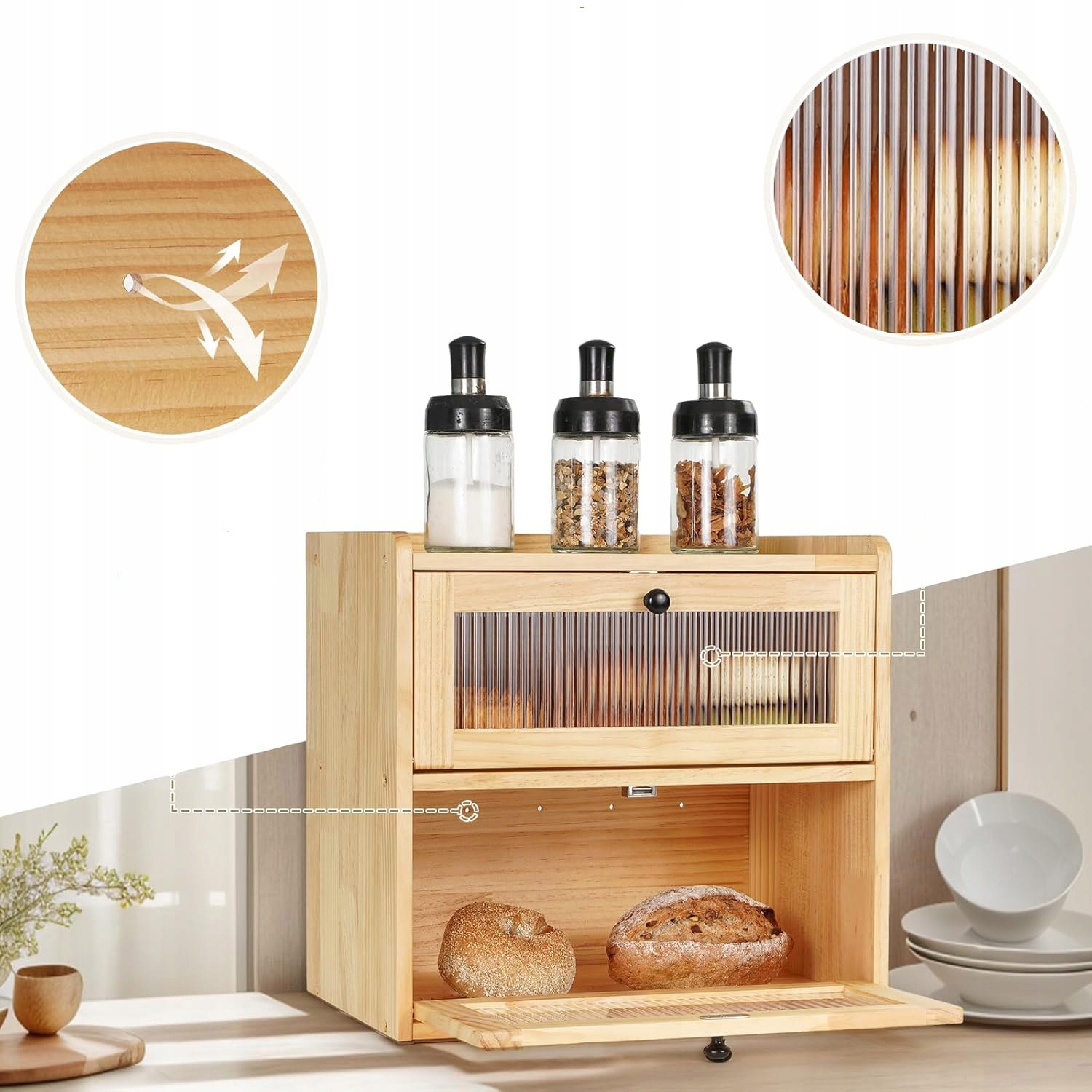 БОЛЬШАЯ ДЕРЕВЯННАЯ ХЛЕБОПЕЧКА, СОСНА, 2-Х ЯРУСНЫЙ КОНТЕЙНЕР ДЛЯ ХЛЕБА 36X24X34CM NATURAL ECO L