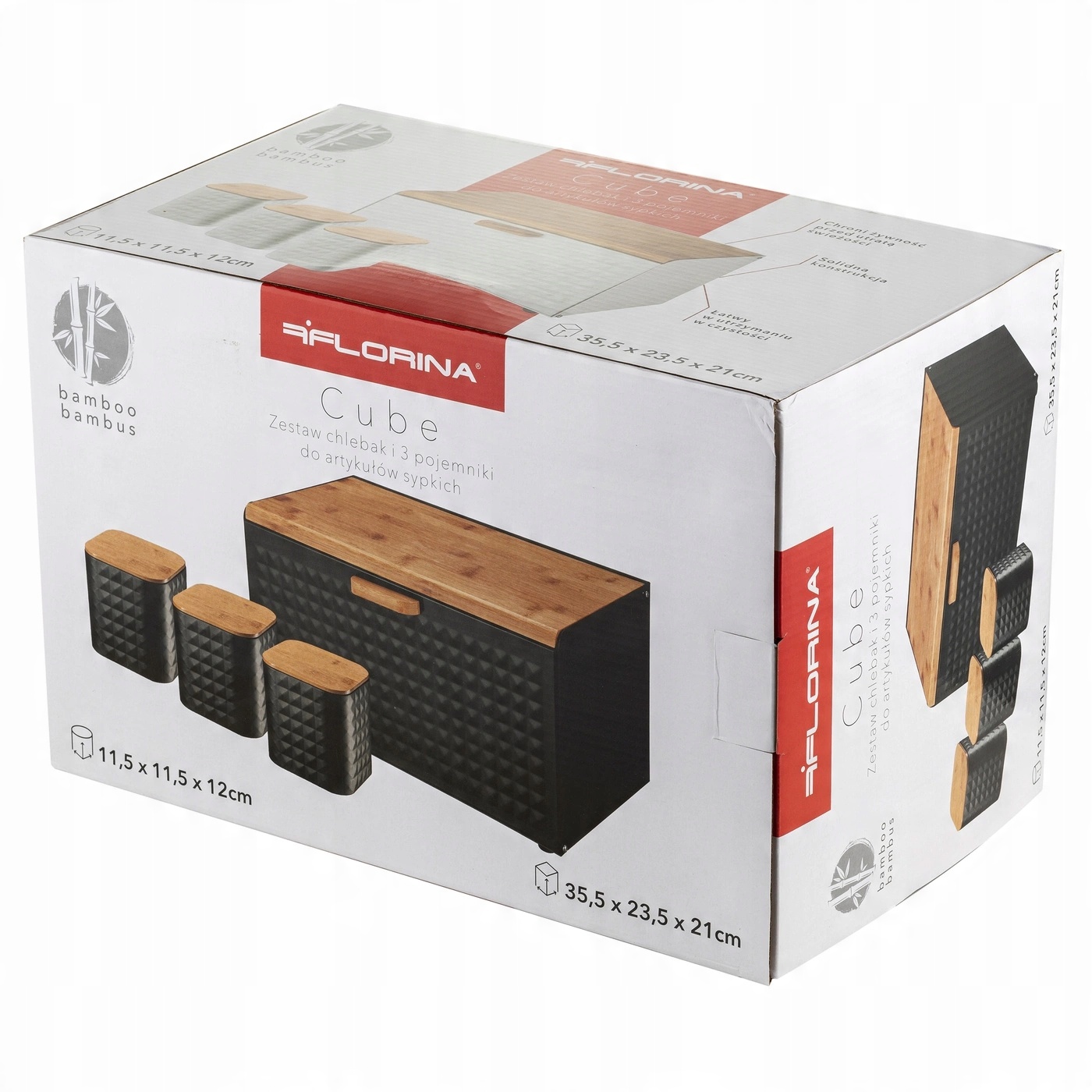 Бренд Florina предлагает необходимый кухонный набор, в который входит хлебница размером 35,5х23,5х21 см и 3 контейнера. Стильные и практичные, они станут прекрасным дополнением любой кухни.