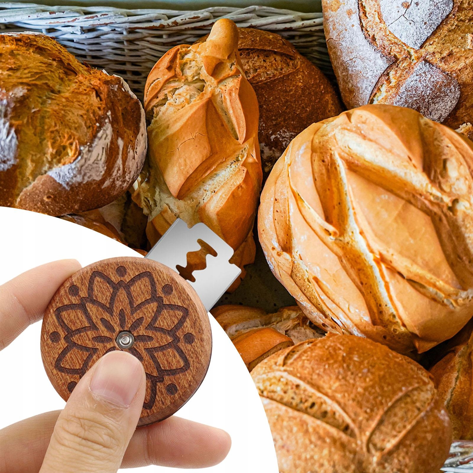 Высококачественный материал и простой в использовании: этот хлеб изготовлен из черного хлеба. грецкий орех Каждый хлебный шарик имеет уникальную и красивую текстуру дерева. Хлебодержатель идеально удерживает лезвие на месте. Лезвие инструмента для надрезания хлеба толщиной 0,1 мм позволяет легко делать аккуратные и красивые надрезы на тесте