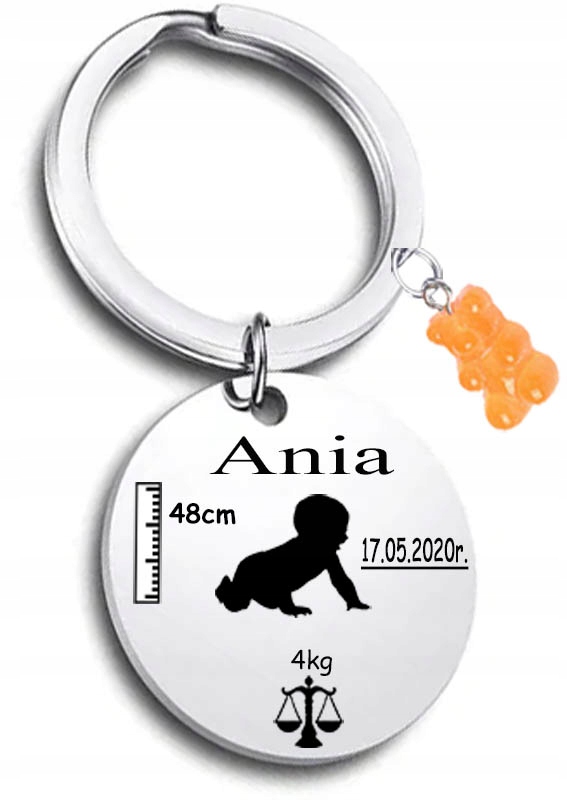БРЕЛОК ДЛЯ МАЛЬЧИКА ДЕВОЧКИ ВЕС ИМЯ РОСТ ДАТА ГРАВИРОВКА + МИШКА