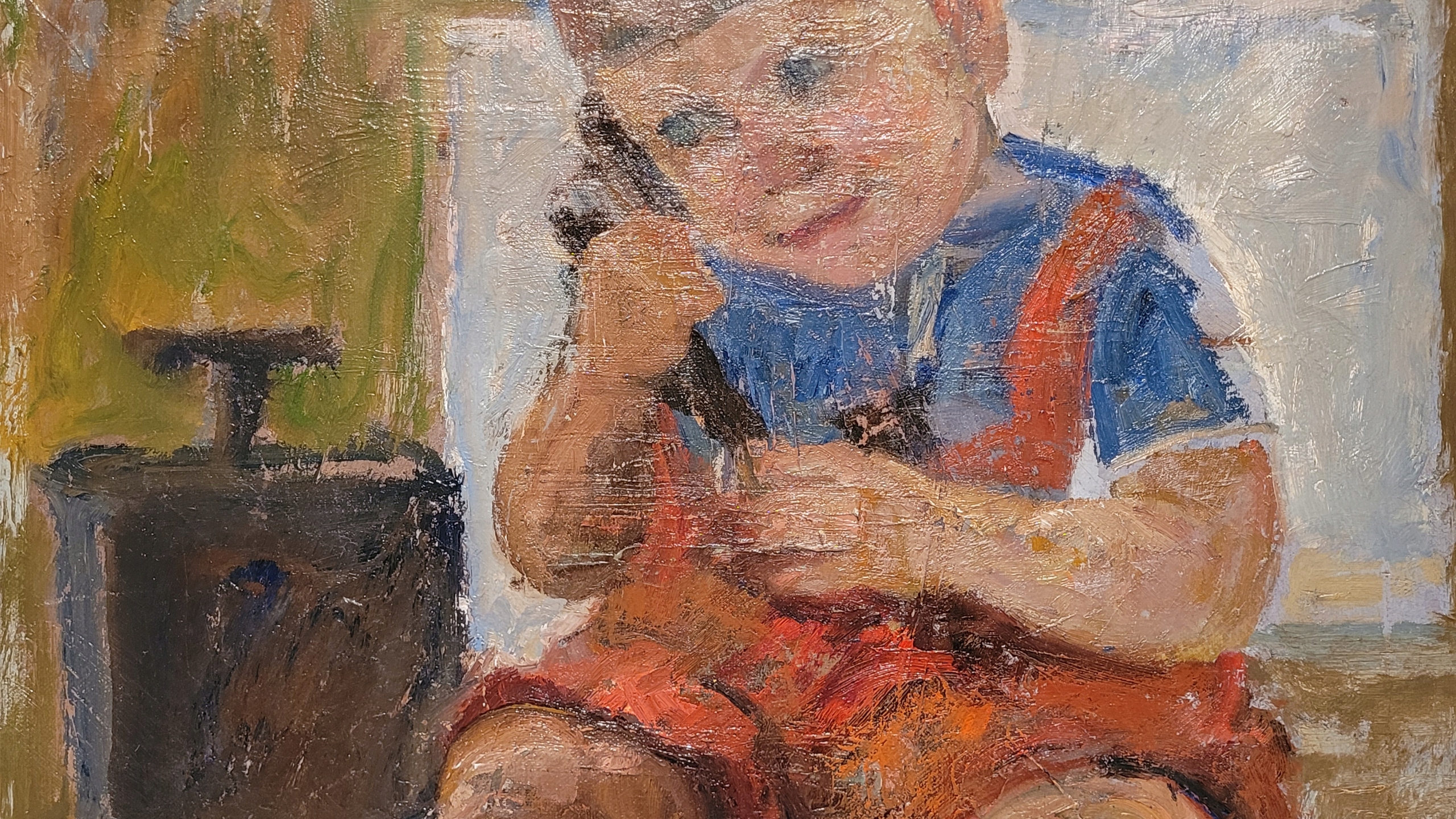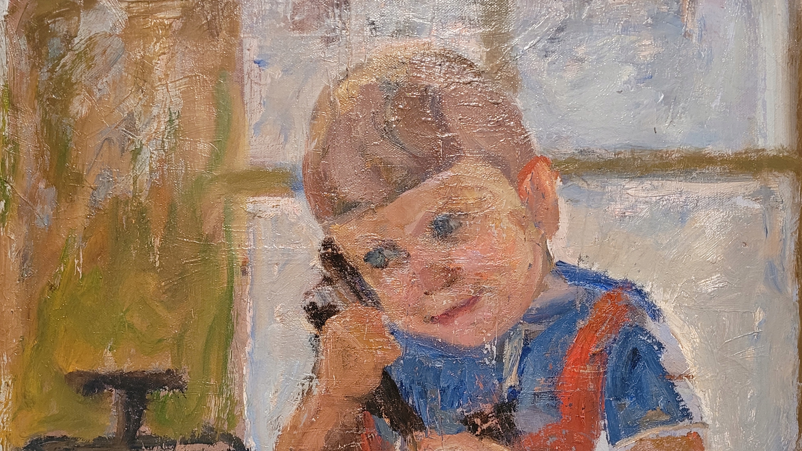 «Мальчик с телефоном», уникальная, подписанная нефтяная картина с 1936 года.