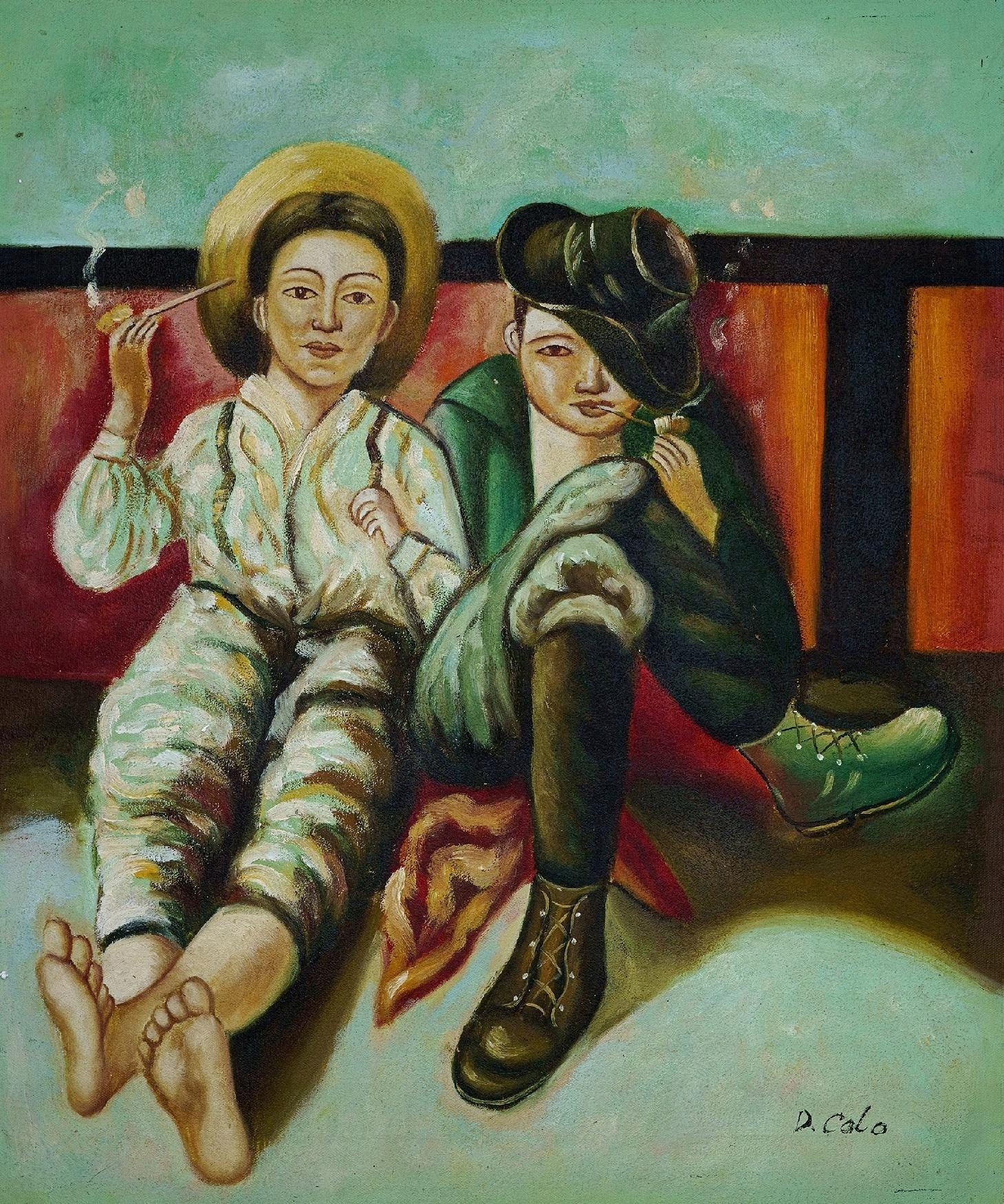 Мальчики сжигают трубку старую масляную картину из Италии