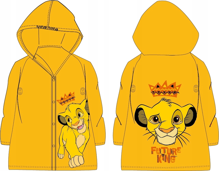 Детский дождь. Перекрыть с сказочным применением короля льва. На пальто Симба. Закреплен с прессой (защелки). Дожди с капюшоном из водонепроницаемого, но долговечного и безопасного материала для ребенка. Это может иметь характерный аромат, который исчезает с хорошей вентиляцией