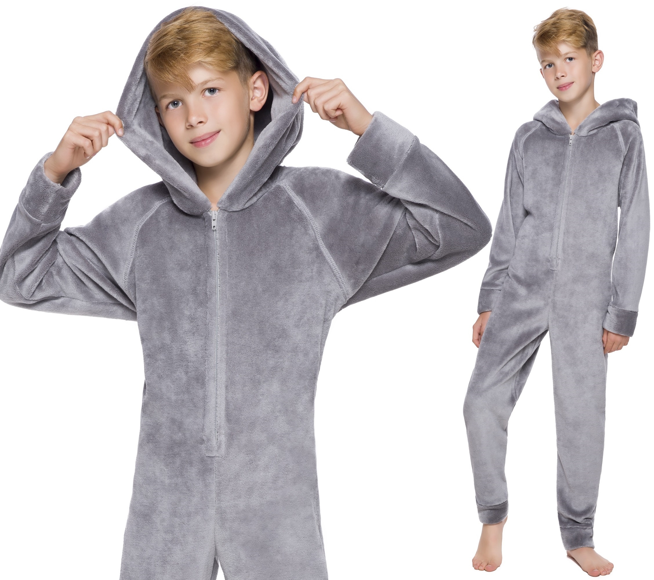 Мальчики пижамы комбинезон с капюшоном 134
