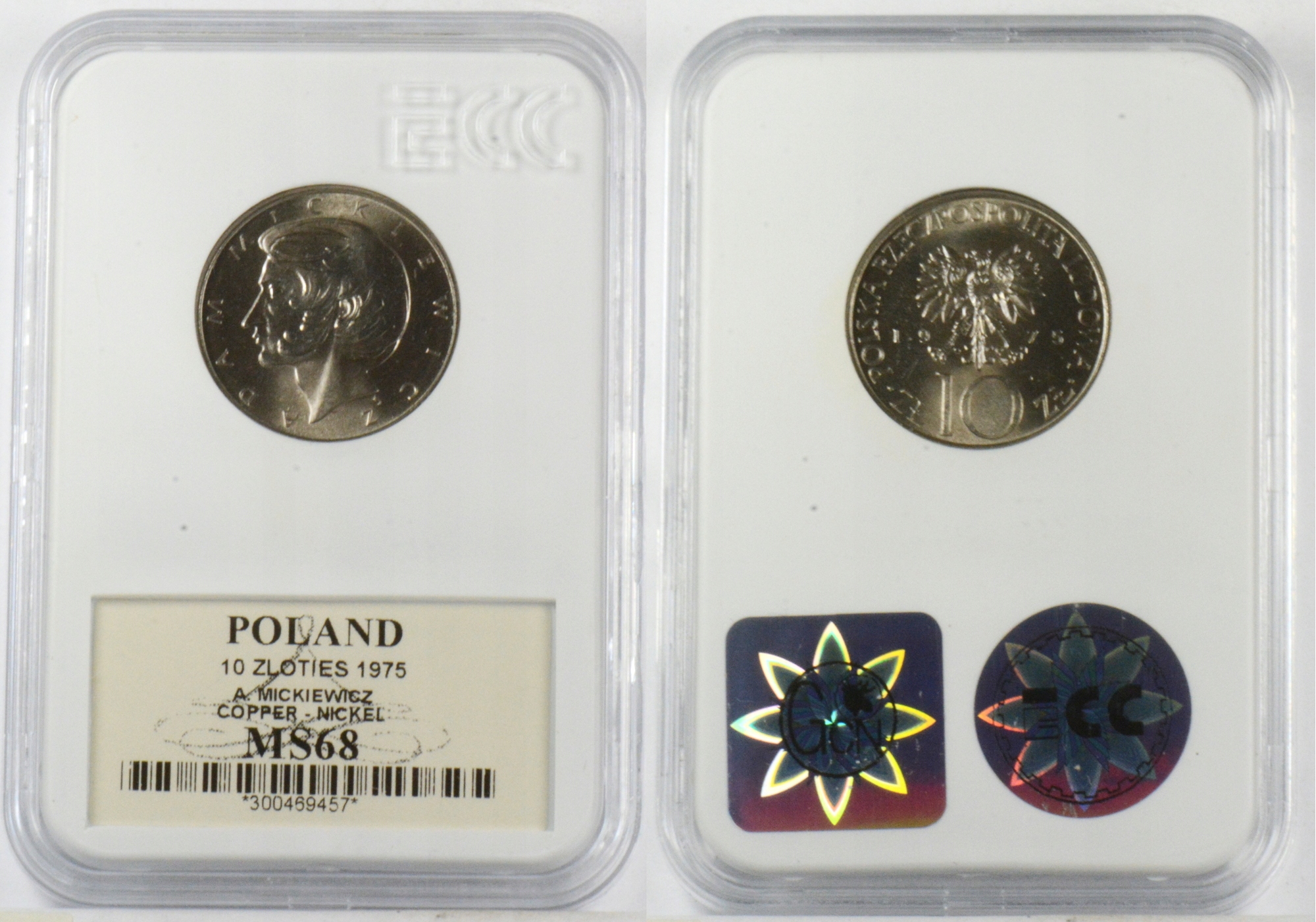 Хм. 10 Zlotys 1975 Adam Mickiewicz MS68 23.09