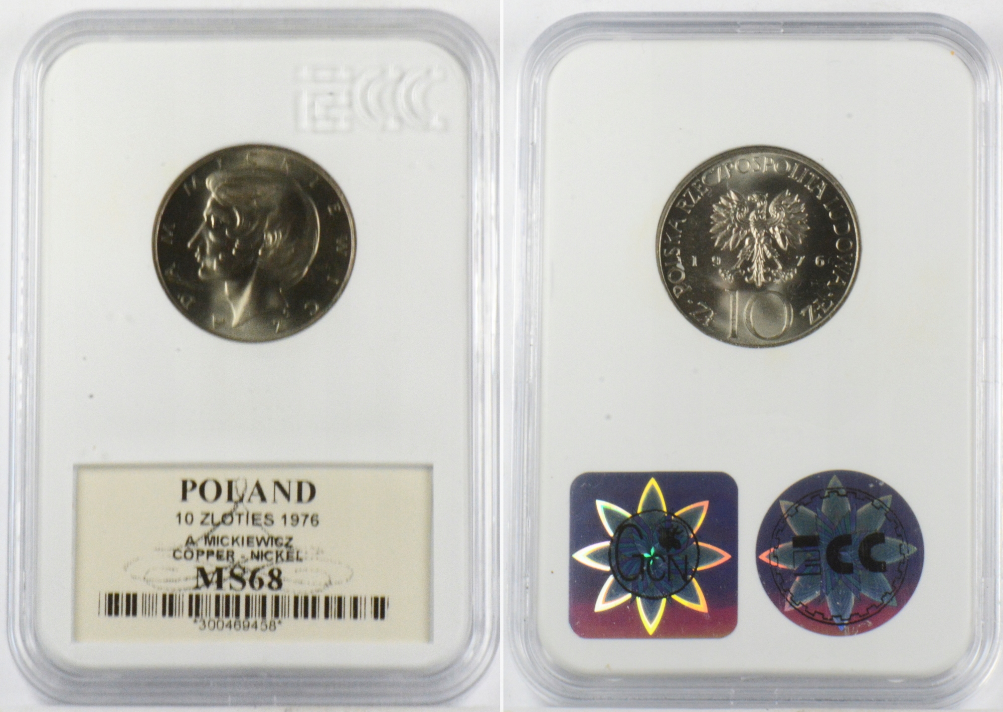 Хм. 10 Zlotys 1976 Adam Mickiewicz MS68 23.09