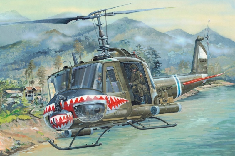 Bell UH-1 Iroquois, широко известный как «Хьюи», представляет собой многоцелевой военный вертолет, был разработан на основе испытаний Bell Model 204 в армии США в 1955 году. Первоначальное обозначение HU-1 (универсальный вертолет) привело к его прозвищу «Хьюи». Впервые он был использован военными в 1959 году, а в 1962 году поступил в серийное производство как UH-1. Последние были произведены в 1976 году, всего было выпущено более 16 000 экземпляров, из которых около 7 000 использовались во время войны во Вьетнаме и прославились своим использованием во время войны во Вьетнаме.