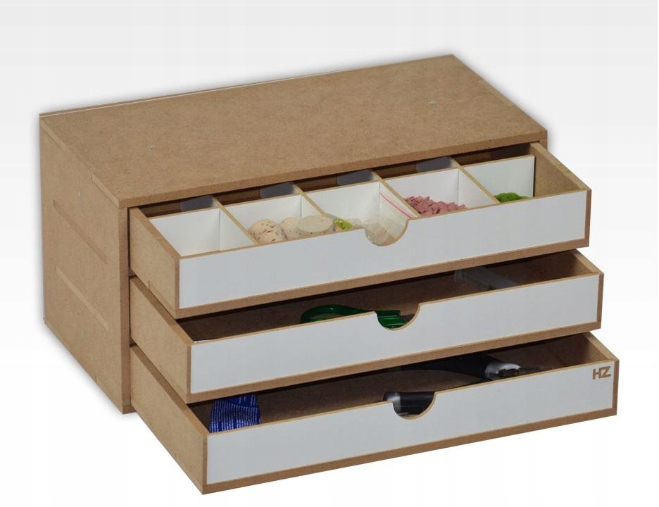 Модуль имеет три выдвижных ящика с разделителями для организации в каждом из них своей конфигурации.