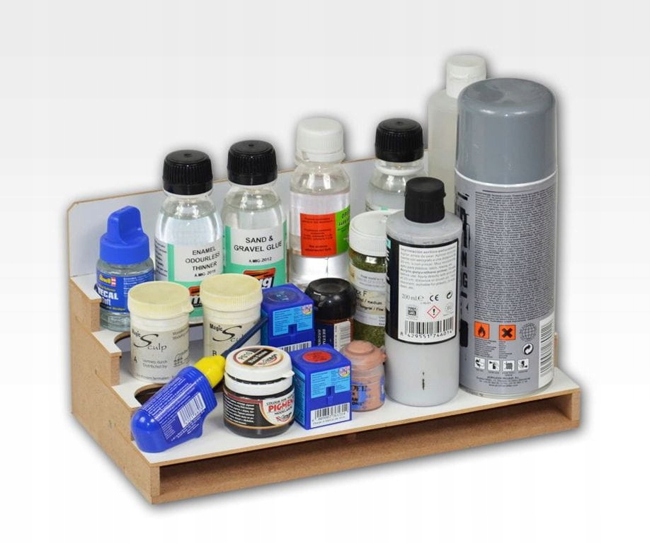 Универсальный модуль для бутылок имеет три полки для красок, бутылок и других емкостей разного размера.
