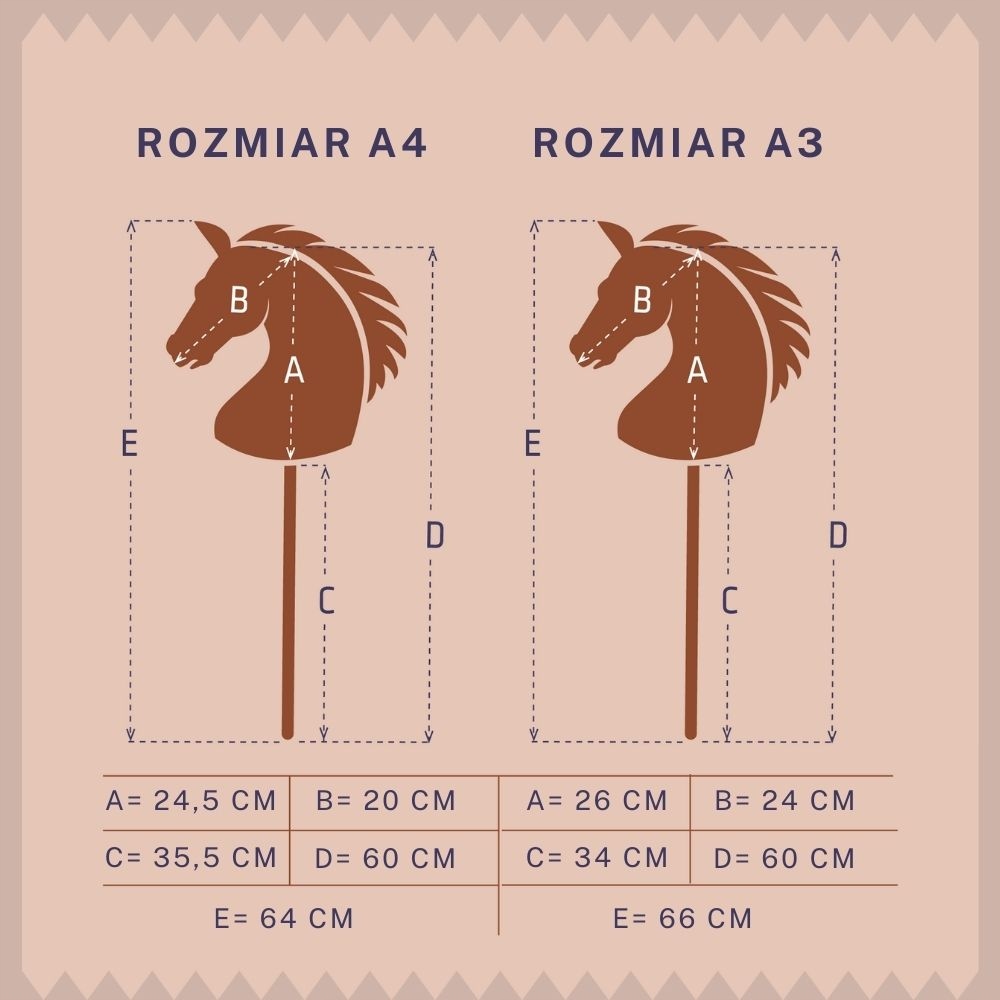 Лошади на палке в коллекции Hopphorse Sport Edition находятся в двух размерах. Размеры Horsów Hobby Head определяются по отношению к бумажным форматам.