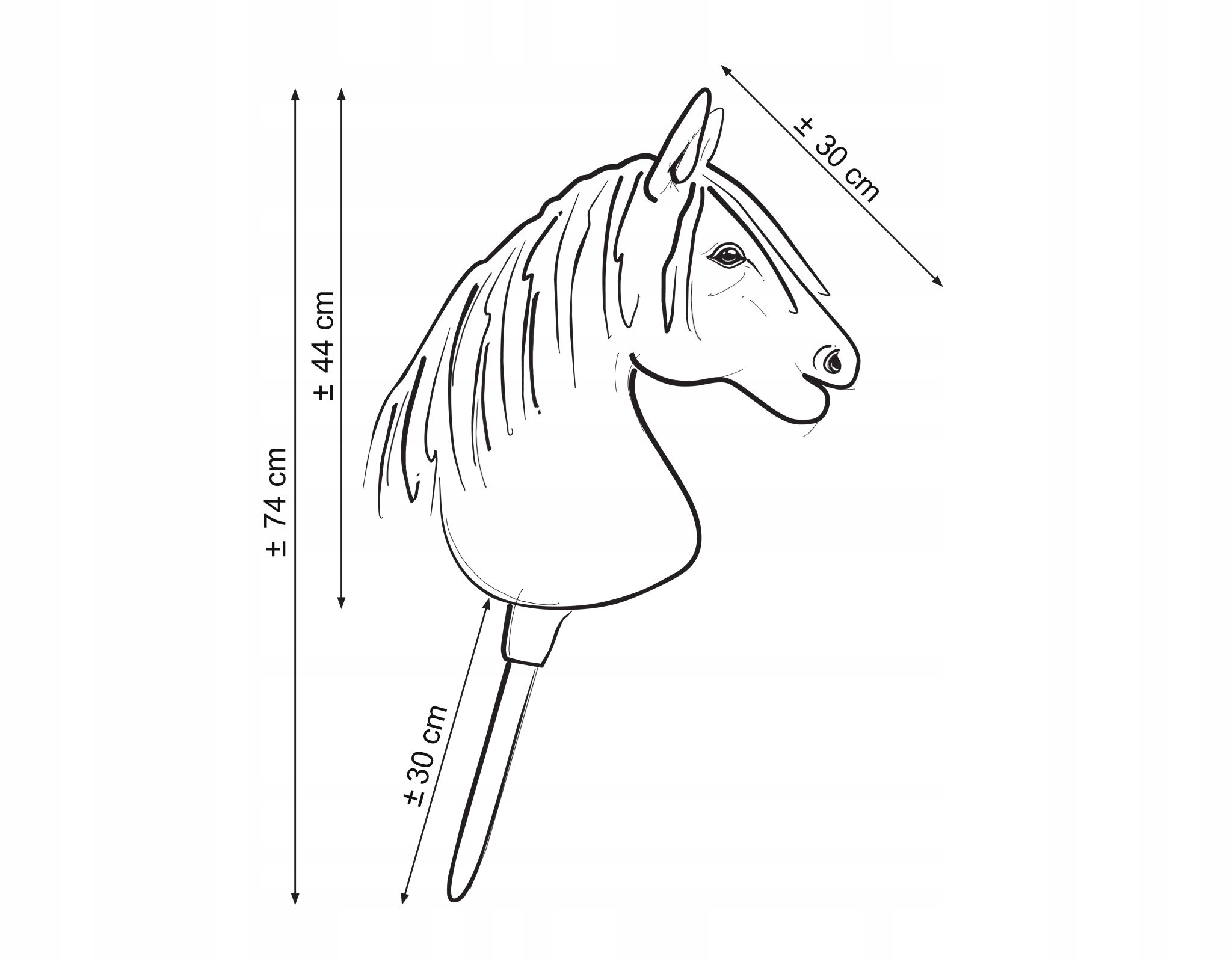 Палка, на которой сидит лошадь, изготовлена из первоклассной древесины бука, гладкой и натуральной. Палка крепится внутри лошади на специальной конструкции, поэтому не перекручивается и очень устойчива. Крепление палки и лошадь дополнительно отделаны норкой, чтобы вся лошадь выглядела аккуратно и неповторимо, не было скотча и т. д. Длина палки идеально приспособлена для прыжков через препятствия.
