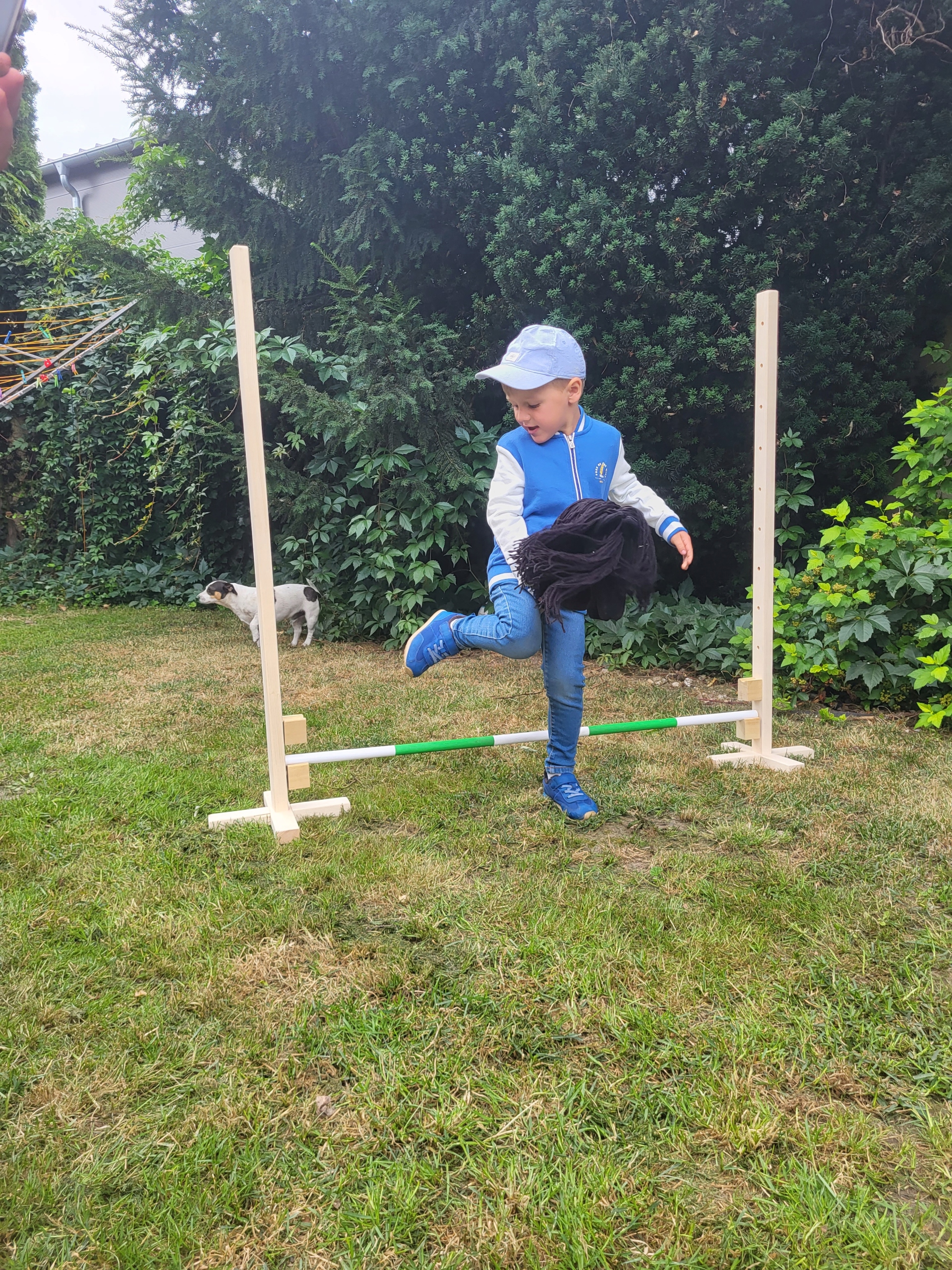 Даже если ваш ребенок не занимается верховой ездой, он может практиковаться в конкуре на лошадке в саду или в помещении.