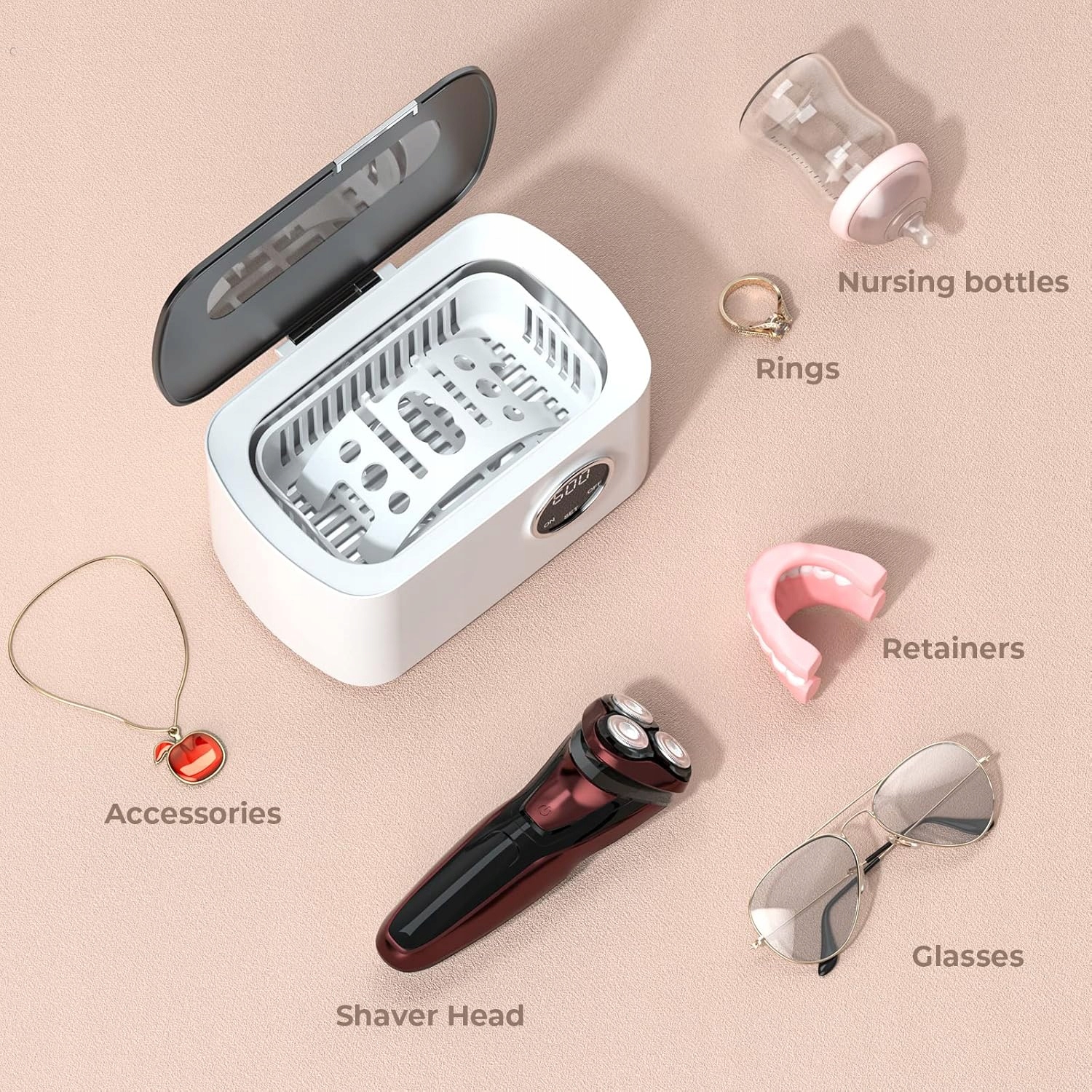 Ультразвуковая стиральная машина идеально подходит для чистки украшений, очков, часов, колец, ожерелий, монет, машин для бритья или детских бутылок. Оснащенная практической корзиной для очистки и держателем часов, обеспечивает точную и безопасную очистку каждого объекта, долго заботясь о их превосходном состоянии.