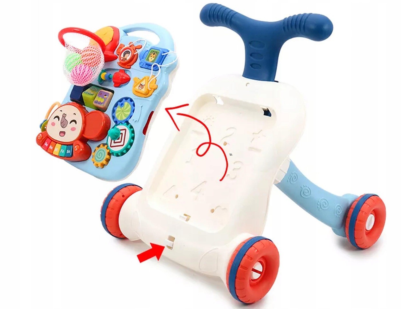 Когда ребенку надоест гулять, мы быстро превратим толкатель в развивающий стол! Ножки включены.