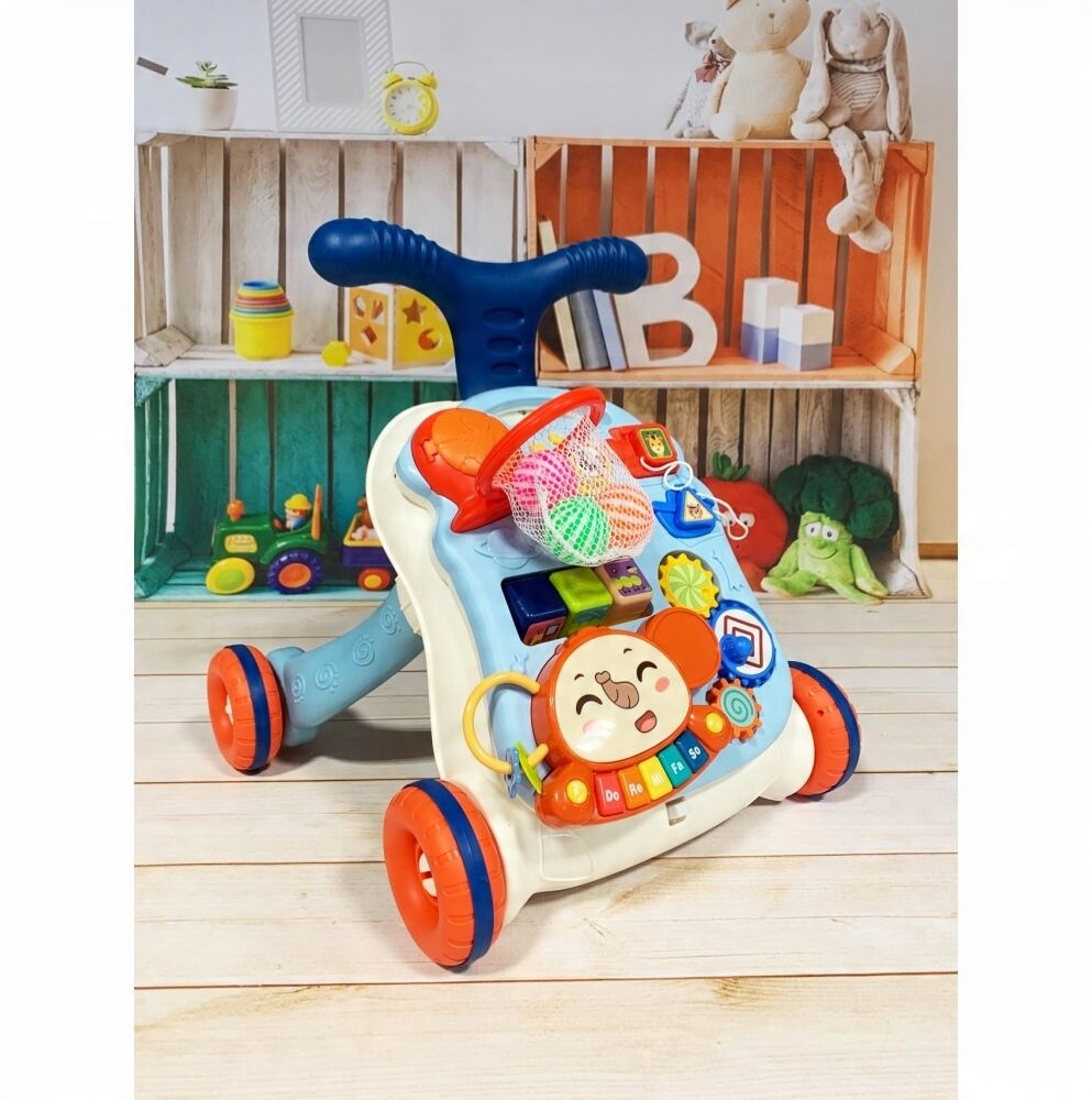 Представленный каталка в сочетании с обучающей панелью влияет не только на обучение ходьбе, но и поддерживает языковое, сенсорное и моторное развитие малыша, а также обучает.