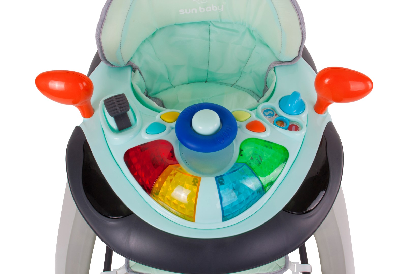 Интерактивные ходунки для ребенка с функцией колыбели, рулем и световой панелью, идеальны для обучения ходьбе.