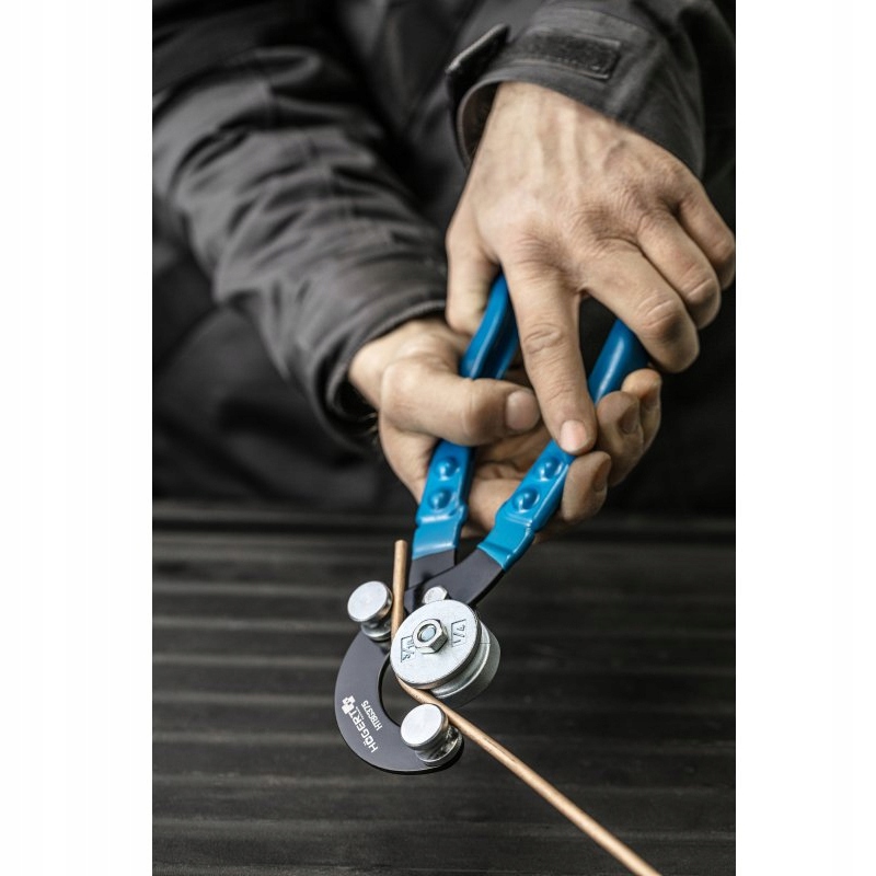 Гибочный станок с двумя роликами, необходимый для гибки тормозных магистралей. Предназначен для медных и алюминиевых труб. В комплект входят сменные кольца, адаптированные под диаметр сгибаемой трубы. Он будет использоваться для формования труб меньшего диаметра, например, труб систем кондиционирования, вентиляции или отопления автомобилей.