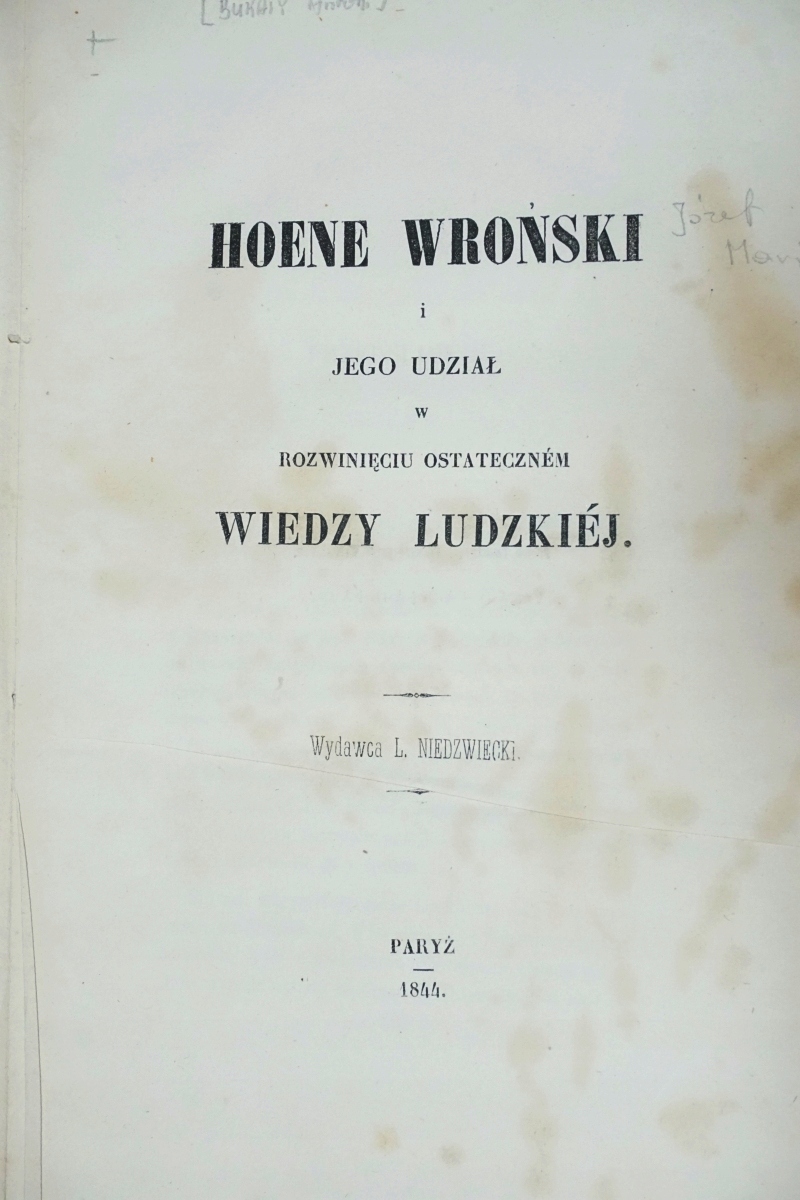 Hoene Wroński i JEGO UDZIAŁ ROZWINIĘCIU OSTATECZNE
