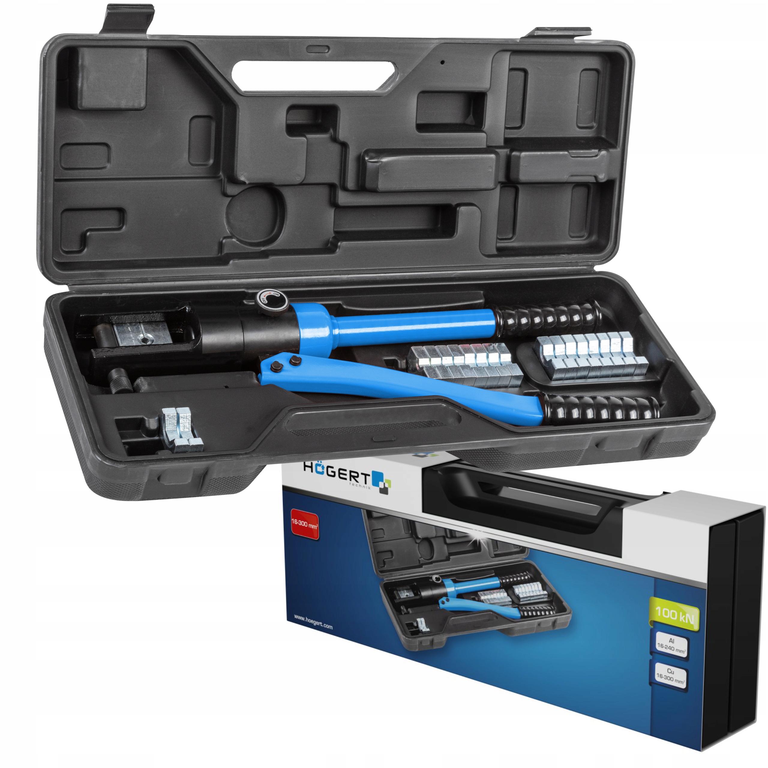 - диапазон обжима для алюминия 16-240 мм², для меди 16-300 мм²