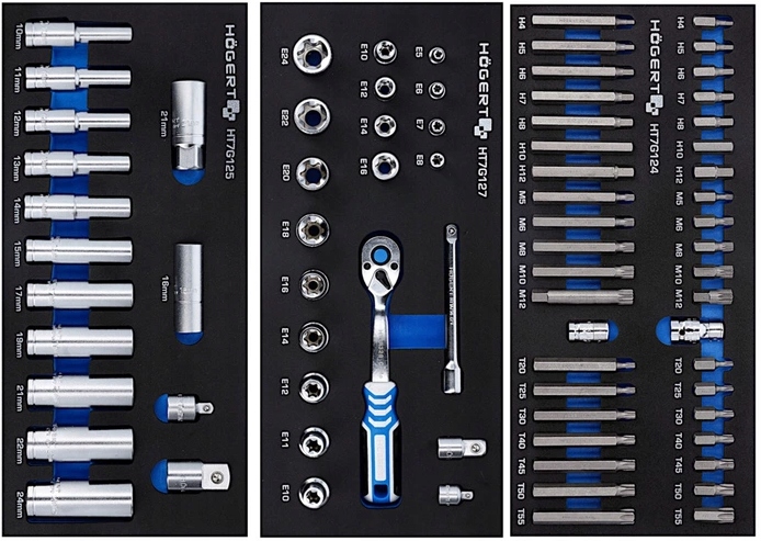 - ⏩ HT7G128 Набор инструментов с трещоткой 1/2", 23 шт., вставка EVA