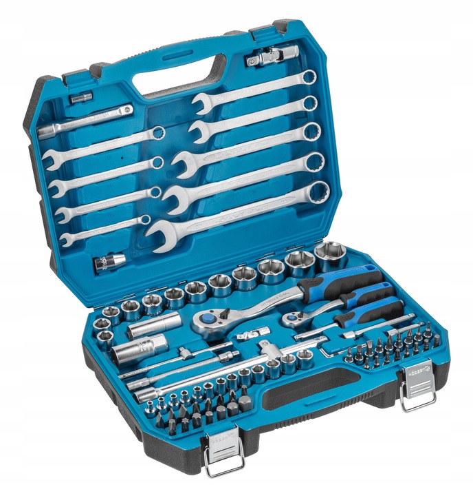 Набор из 85 элементов, состоящий из рожковых ключей, головок, бит и отверток 1/4" и 1/2"