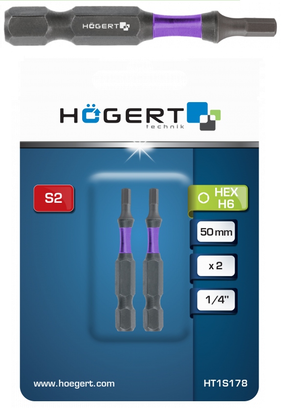 Hogert Overdriver Tip. Hex H6 50 мм ход 2 ПК