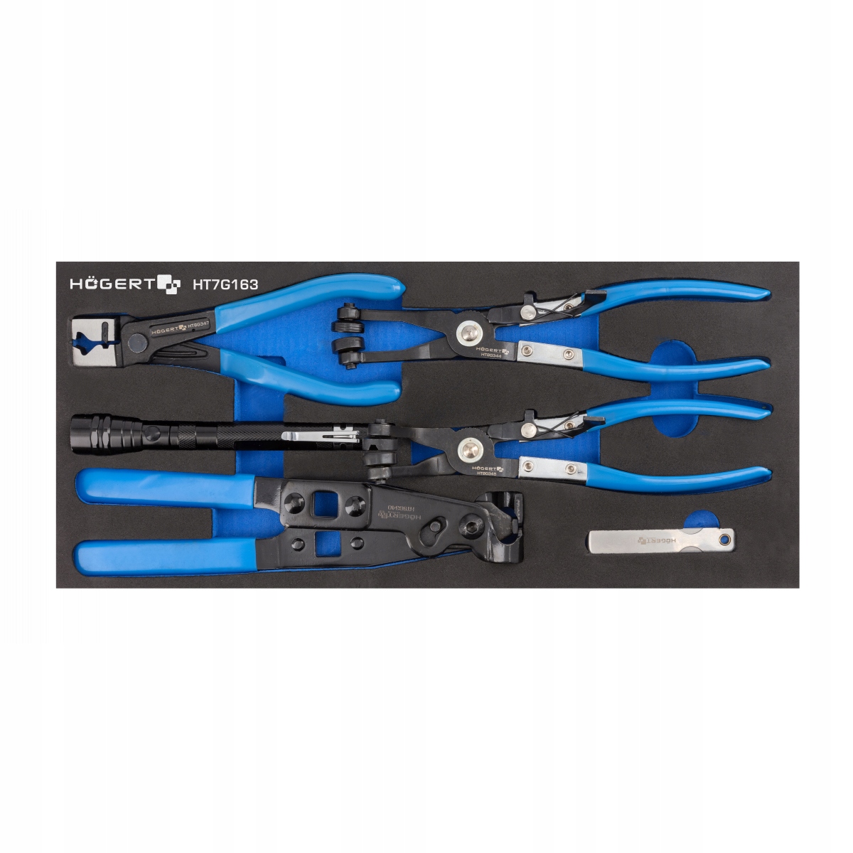 Щипцы для демонтажа стальных лент крепления резиновых чехлов осей автомобилей. 3 размера плоскогубцев для ослабления и затягивания многоразовых хомутов (175 мм – HT8G347, 230 мм – HT8G344, 45° – HT8G345).