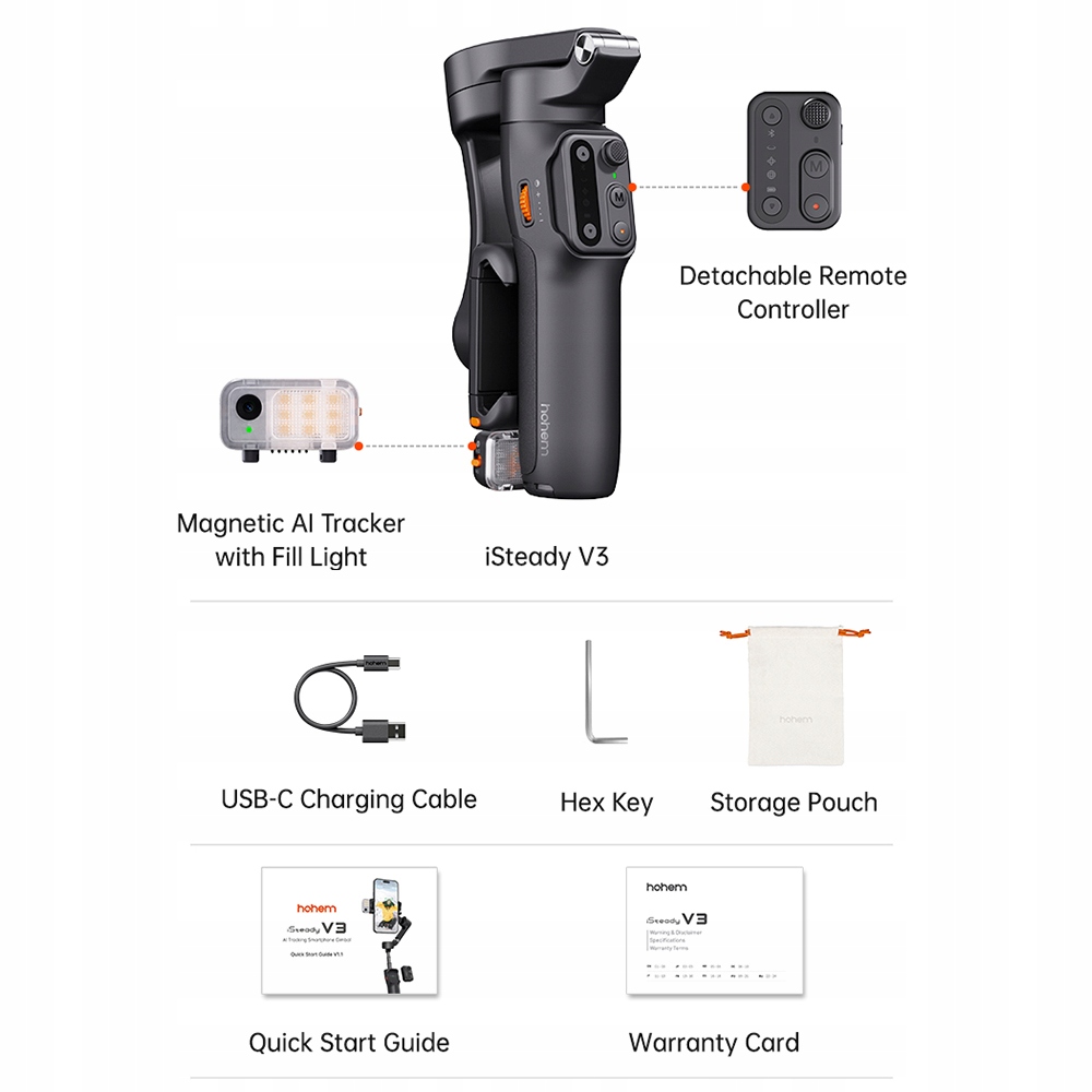 hohem isteady v3 uptractable 3-й смартфона Стабилизатор Стабилизатора складного телефона Vlog Гимбал Ай Управление встроенным светодиодным светодиодом