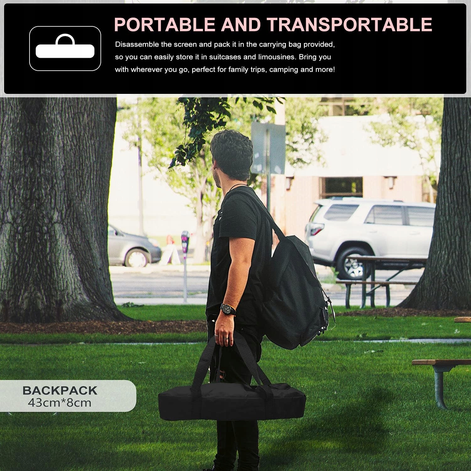 ⋆ Удобно для переноски: Экран проектора изготовлен из света, но прочный алюминий, переносная рама экрана пленки может быть легко перенесена в любое место благодаря прикрепленной транспортной сумке с мягким мягким мягким, и хорошо защищена. Это может быть легко скрыто в автомобильном стволе, седаном! Это облегчает путешествие вместе с семейными поездками, кемпингом или вечерним кино во дворе и т. Д. Использование небольшого процесса для устойчивой к влажности обработки.