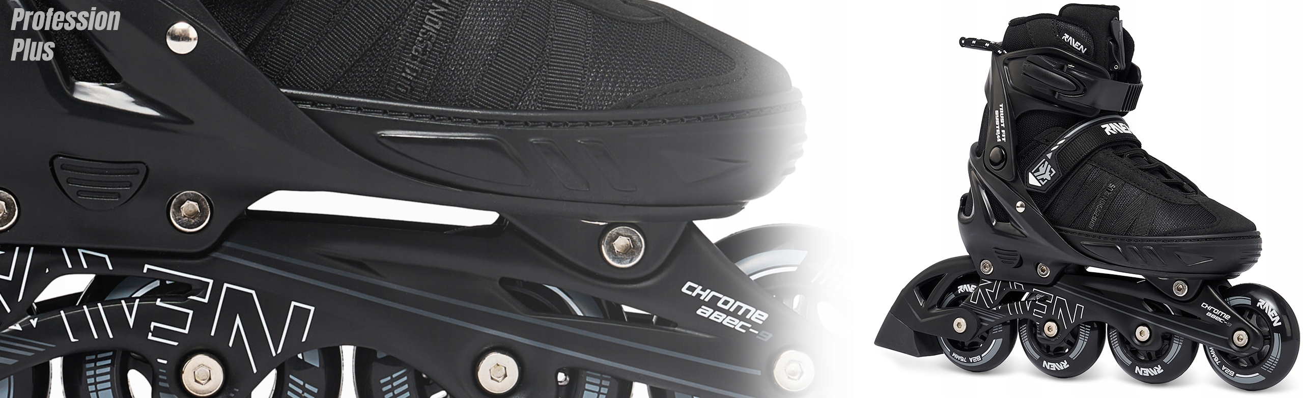 Profession PLUS — модель роликовых коньков, предназначенная как для начинающих, так и для пользователей среднего уровня, предлагающая то, чем славится бренд Raven — материалы превосходного качества, исключительную долговечность и высокий комфорт использования.