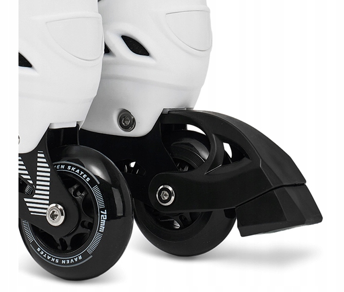 Шнурки, пряжка с зубчатым ремнем и защелка обеспечивают правильное затягивание и надежное удержание ноги в обуви, предотвращают смещение стопы и гарантируют безопасное вождение. Застежки на коньках Raven имеют кнопку, которая предотвращает их расстегивание во время катания. Ремешок на липучке позволяет удерживать шнурки, предотвращая их случайное расстегивание.